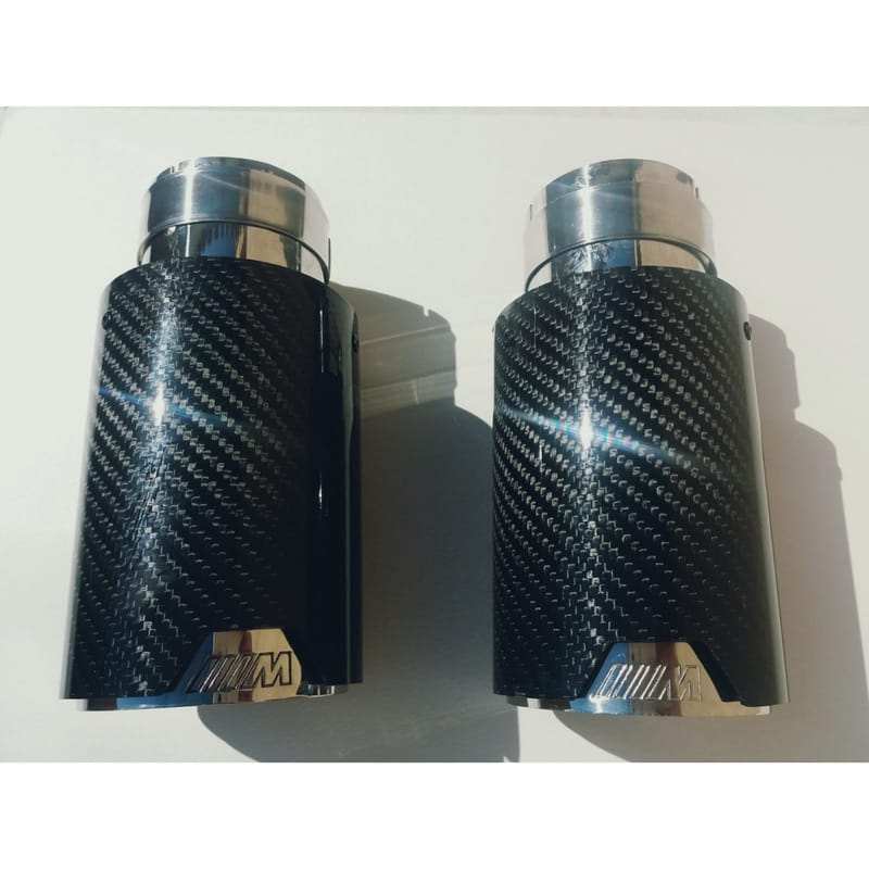 Embellecedor simple de M performance, acabados de fibra de carbono y acero inoxidable real. Valido para varios modelos bmw E46 E60 E90 E92 M2 F87 M3 F80 M4 F82 F83 M5 F10 M6 f12 F13 X5M X6M y mas.